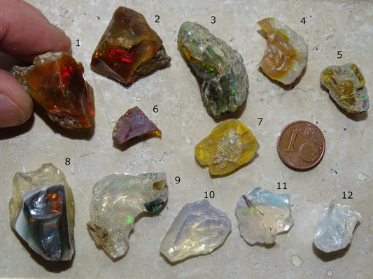 Opale Welo d’Éthiopie - Sélection de spécimens bruts de 1 à 7,5 grammes, de 10x10x0,5mm à 35x25x20. Très belle pièce, parfait en collection ,bijouterie, exposition...