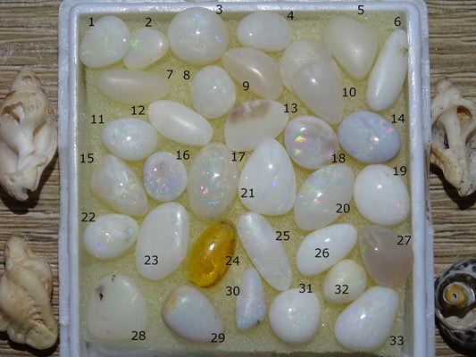Opale multi-feu, cabochons au choix de 1,9x0,8x7 mm à 23x15x0,9. L'authentique et mythique pierre pafait en bijouterie, collection ,exposition...!