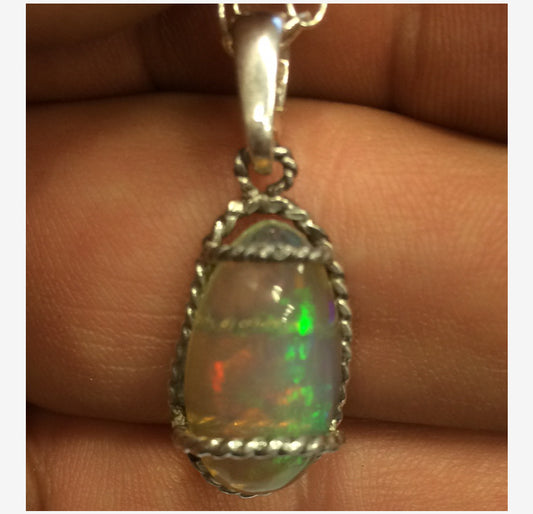 Opale Welo, l'authentique et mythique pierre ! Pendentif monté sur Argent 0.925, dimensions : 12 à 14 millimètres . Pendentif vendu seul ou avec chainette en Argent !