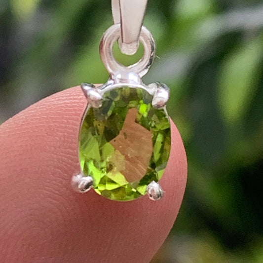 Pendentif ovale en argent avec péridot – Bijou fin et lumineux, dimensions 18 x 8 x 5 mm !