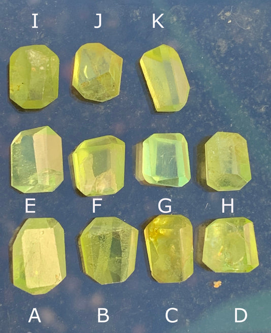Péridot, cabochons rectangulaires a pans coupés (non percé), vendus en lot ou à l'unité, de 10mm x7 x 4 en moyenne - 5,3 grammes (lot). Parfait en collection, bijouterie, exposition...