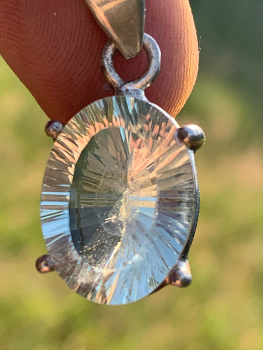 Prasiolite naturelle, superbe pendentif en Argent de 30mm x 14 x 11. Prêt à porter ou pour collection ,exposition...