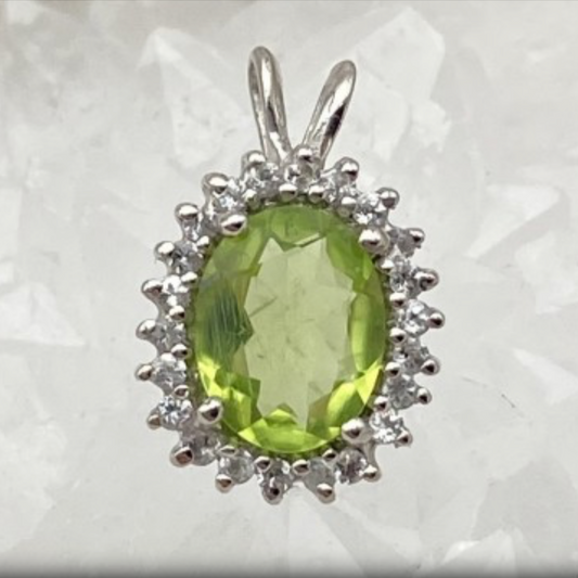 Péridot | Collection Retro' | Pendentif en Argent serti d'une pierre gemme de forme ovale, entouré d'Oxyde, 16 x 10 mm !