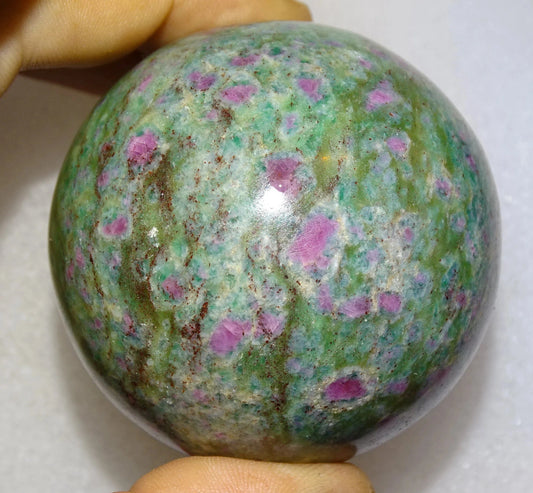 Sphère en rubis fuchsite, pièce unique de 60 millimètres, de 325 grammes. Magnifique qualité !