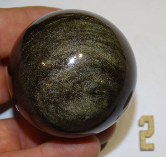 Sélection de 2 sphères en Obsidienne doré, de 53 et 56 millimètres - 130 et 160 grammes. Une pierre naturellement belle ! Parfait pour la lithothérapie, collection, exposition...!