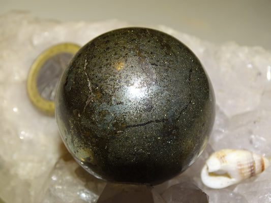 Pyrite cristal du pérou, pièce unique, sphère de 75 millimètres - 1,090 grammes. Une pierre naturellement belle !
