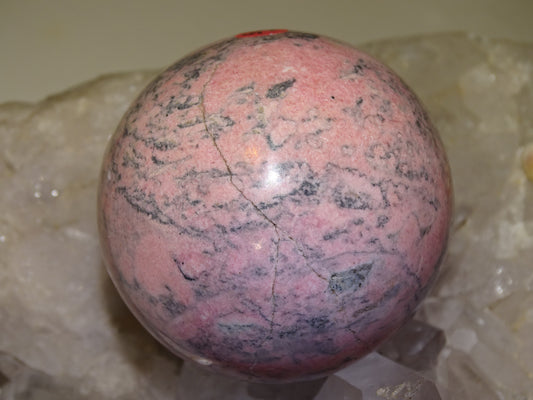 sphère en rhodonite, pièce unique de 56 millimètres, de 317 grammes. Magnifique qualité, superbe couleur rose !