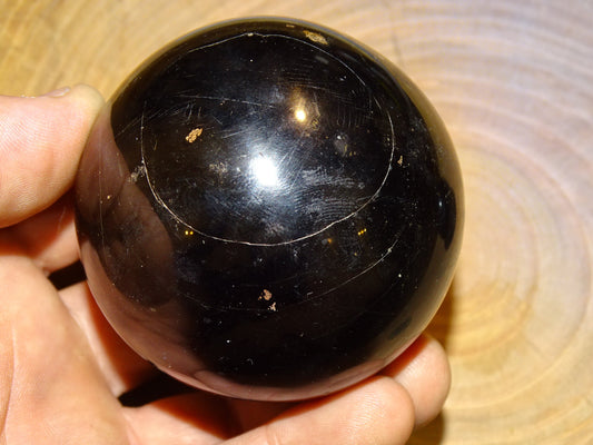 Sphère en Shungite, de 30, 40 ou 50 millimètres, de 60 à 120 grammes. Magnifique qualité ! Parfait pour la lithothérapie, collection, exposition...!