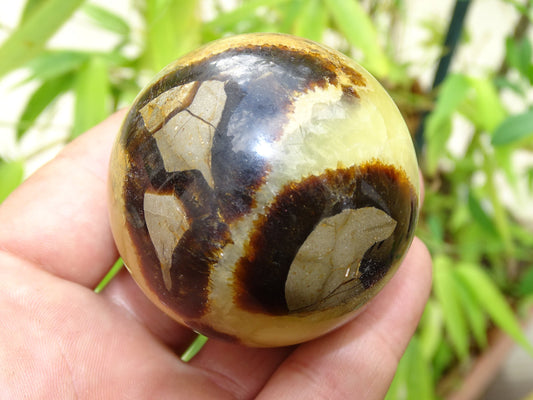 Géode/ sphère XL en Septaria, de 120 millimètres, de 1250 grammes. Magnifique qualité ! Parfait pour la lithothérapie, collection, exposition...!