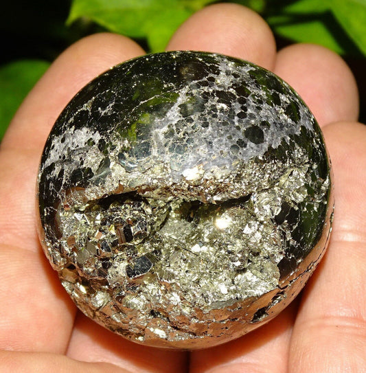Pyrite cristal du pérou, sphère de 58 millimètres - 280 grammes. une pierre naturellement belle ! Parfait pour la lithothérapie, collection, exposition...!