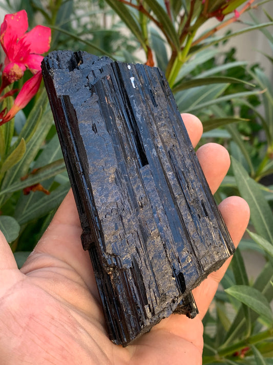 Tourmaline noire, spécimen naturel de 137 x 64 x 40 mm - 568 grammes. Une très belle pièce de belle taille !