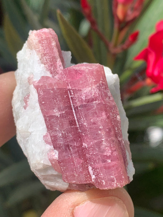 Tourmaline Rubellite sur quartz, 58 x 43 x 40mm - 87,3 grammes. Une très belle petite pièce !