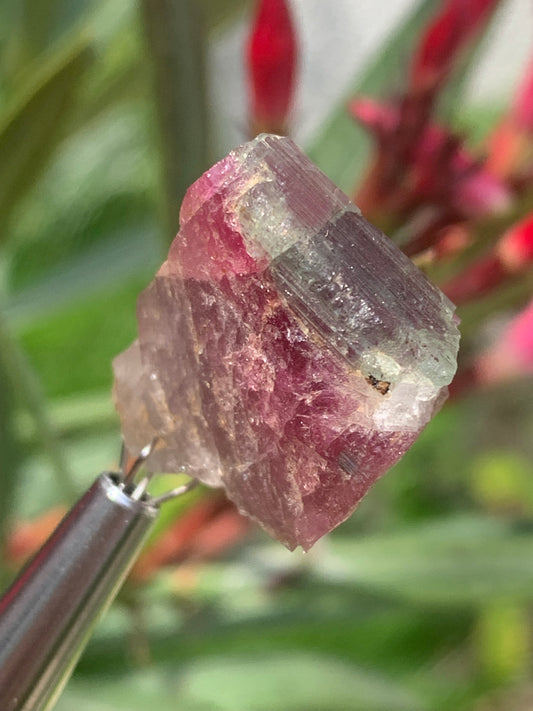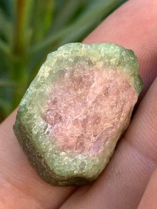 Tourmaline melon d'eau/ pastèque, cristal brut de 27mm x22 x13 environ - 11,3 grammes. Parfait en bijouterie, collection ,exposition...