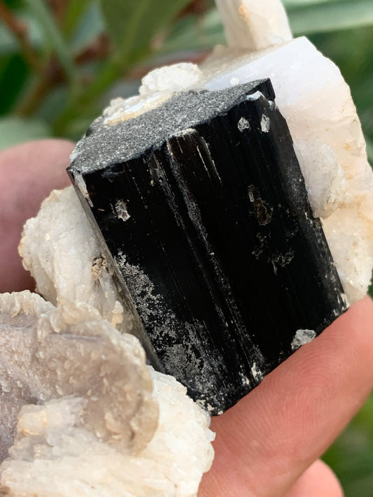 Tourmaline noire, spécimen naturel de 80 x 50 x 36 mm - 117 grammes. Une très belle tourmaline sur Quartz et Muscovite !