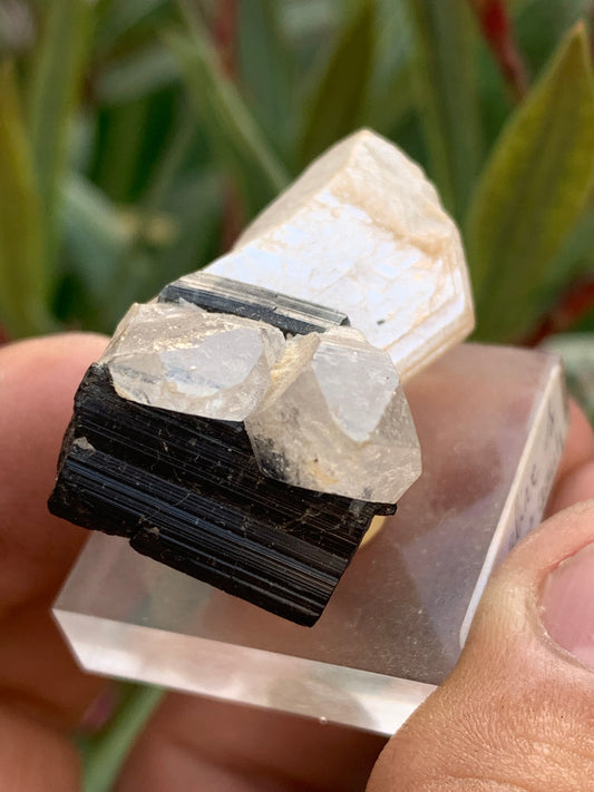 Tourmaline noire, spécimen naturel de 38 x 26 x 23 mm - 19,5 grammes. Une très belle tourmaline sur Quartz et Kunzite verte !