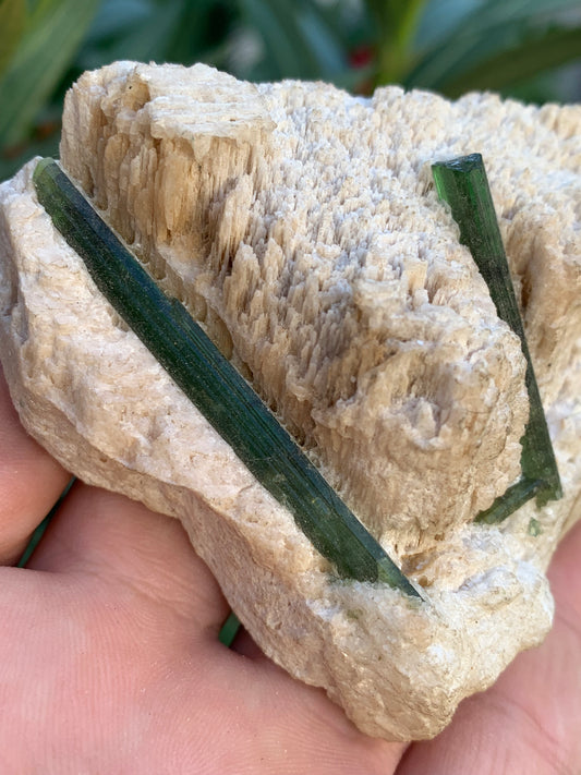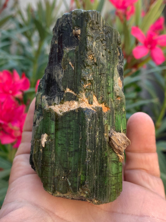 Tourmaline verte/ Verdélite, spécimen naturel de 183 x 62 x 35 mm - 144,5 grammes environ. 2 magnifiques cristaux de belle longueur !