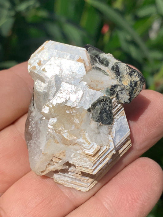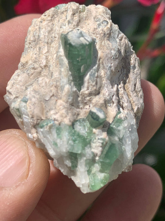 Tourmaline verte/ Verdélite avec Quartz et Muscovite, spécimen naturel de 52 x 44 x 27 mm -46 grammes environ. Superbe petite pièce de minéralogie !