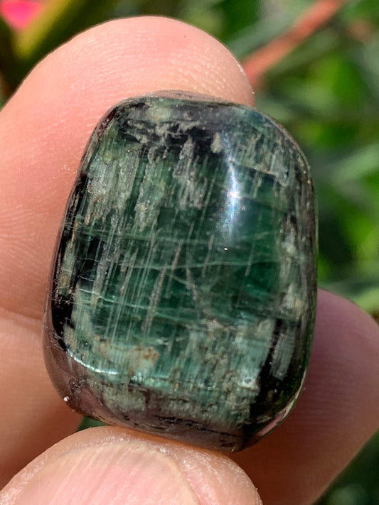 Tourmaline verte/ Verdélite, pierre roulée de 25 x 23 x 16 mm -17,3 grammes environ. Superbe petite pièce de minéralogie !