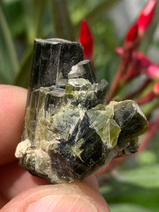 Tourmaline verte/ Verdélite, macle de cristaux naturels de 30 x 30 x 20 mm - 15,9 grammes. Magnifique petite pièce !