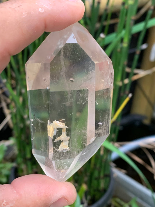 Cristal de Roche - Double pointe laser naturelle - ± 48 de haut x 50 de large x 32 mm d'épaisseur - 43,4 gr. !