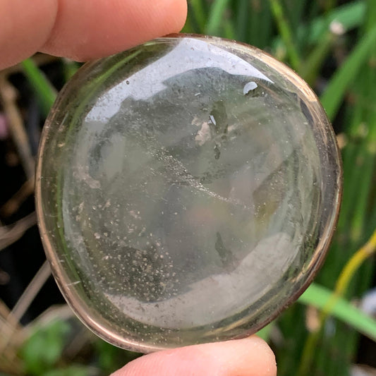 Cristal de Roche Fumé / Quartz fumé – galet de ± 48 mm (H) × 45 × 11 mm – 37,4 g !