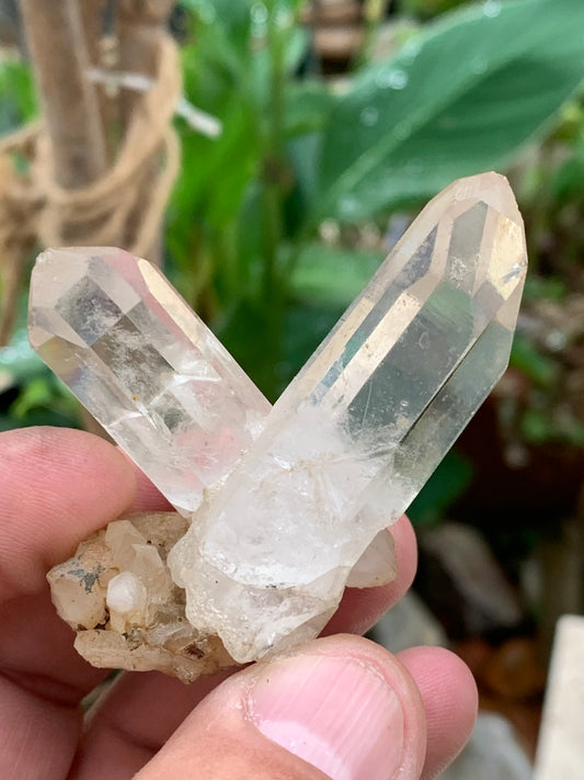Cristal de Roche – Cristaux naturels jumelés – ±37 mm de haut × 22 × 18 – 16,10 gr. !