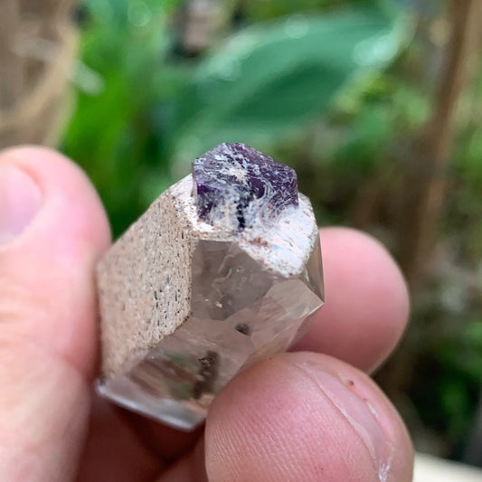 Cristal de Roche avec inclusion d’un Cristal d’Améthyste – Pointe laser naturelle - ± 52 mm (H) × 25 × 21 mm – 37,8 g !