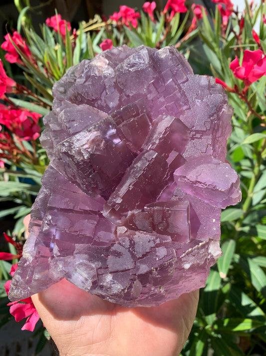 Fluorite violette, macle de gros cristaux de 15,5cm x 11,5 x 8,5 / 2240 grammes. Belle qualité, magnifique pièce !