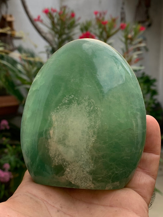 Fluorite verte, forme libre de 100 mm x 90 x 53 - 800 grammes. Belle qualité, magnifique pièce !