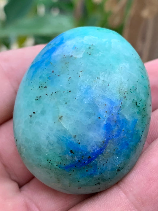 Planchéite, galet de 51x41x26mm - 82,8 grammes. Parfait en collection, bijouterie, exposition...