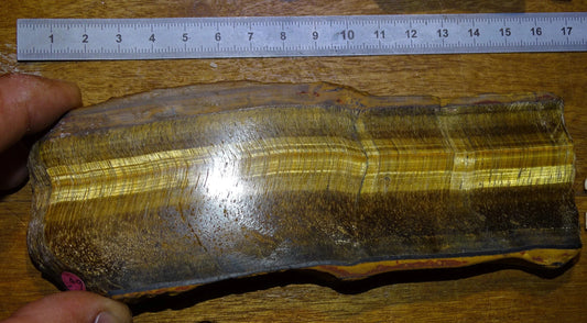 Oeil de tigre, plaque/ tranche polie de 170 x 60 x 12 mm - 124 grammes. Magnifique pièce pour exposition, lithothérapie, collection !