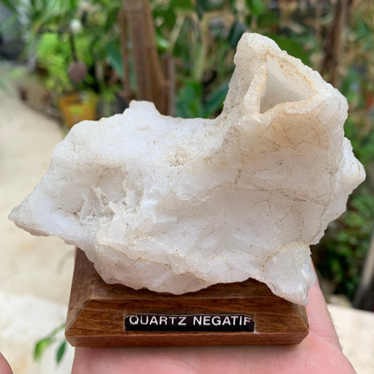 Quartz négatif/ Quartz Alpha - Pièce ancienne sur socle en bois - 103x67x54 mm - 161,1 gr. - Très belle pièce !
