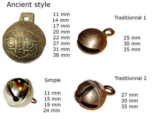 Cloches et clochettes en métal. Styles médiéval, moderne ou classique, de 11 à 38 mm pour instruments et danse !