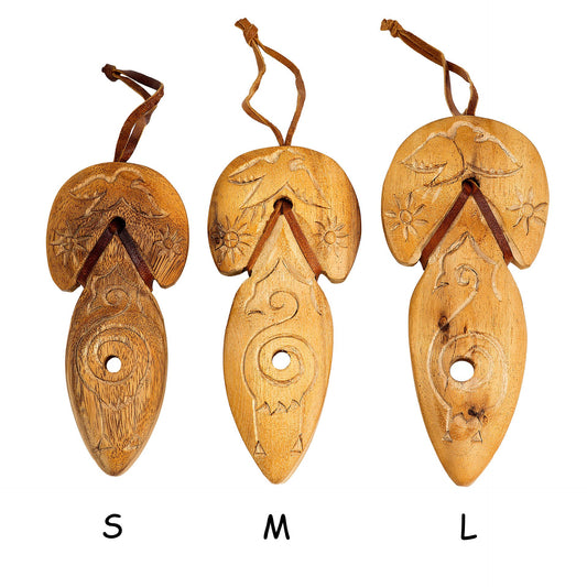 Boites/ étui en bois sculptées pour rangement et protection de guimbarde de type 'Altai', 'Murchunga'... Longueur : de 11 à 14,5 centimètres. 2 modèles/ 3 tailles au choix !