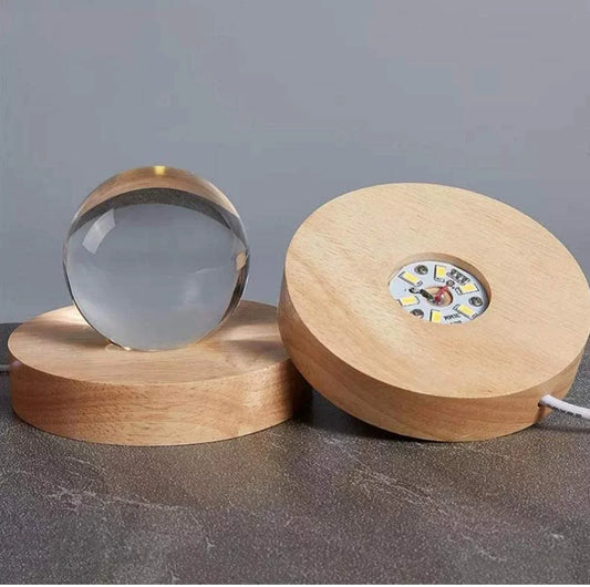Base LED en bois avec adaptateur USB – Illuminez vos pierres et objets décoratifs (10 x 2 cm, 5V) – Compatible lampes en sélénite, prismes, pointes et sphères !