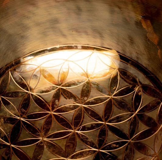 Bol chantant gravé de la Fleur de vie, au choix de 20 ou 21 cm - 950 ou 1200 gr. Vendu avec maillet adapté !