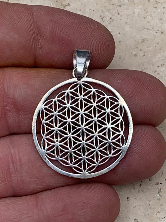 Pendentif en Argent 925 en forme de Fleur de vie, de 30 millimètres de diamètre. Vendu avec cordon noir réglable offert, parfait !
