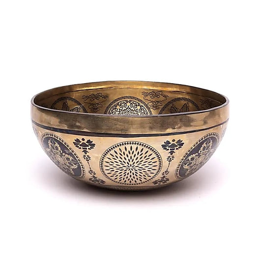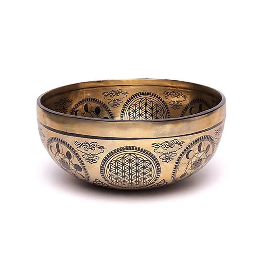 Bol en 7 métaux gravé de la 'Fleur de vie', taille de 22/24 cm- ± 1400/1600 gr. Fait main au Népal !