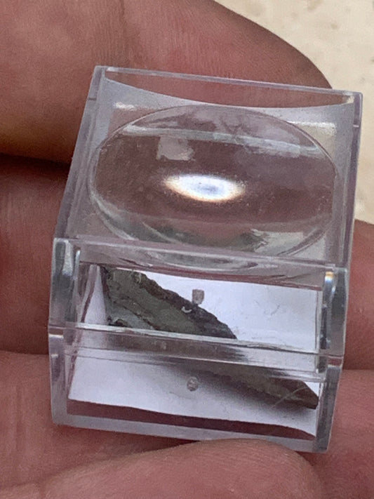 Météorite 'Muonionalusta' de 30 x 10 x 3mm - 2 grammes. Vendu avec coffret 'loupe' !