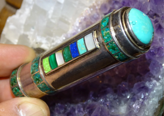 Étui/ Tube/ Stick en Argent habillé de pierres de type Turquoise, réalisé par un bijoutier Français !
