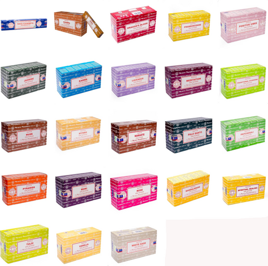 Encens 'Satya Agarbatti' – Série Classique. 23 parfums au choix ! Vendu à l’unité ou en pack de 12. Marque reconnue, qualité garantie pour vos ambiances !