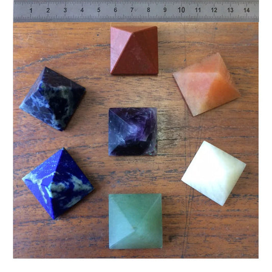 Pyramides en pierre 3×3 cm – Set de 7 pièces / 7 chakras – Idéales pour la lithothérapie ou la collection !