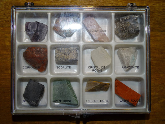 Coffret 'découverte', parfait pour commencer une collection de minéralogie ! Pierres de belles qualités !