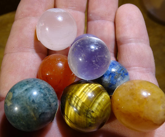 Set de 7 sphères 7 chakras en pierres de 20 mm de diamètre - Un kit parfait pour la lithothérapie, collection, etc