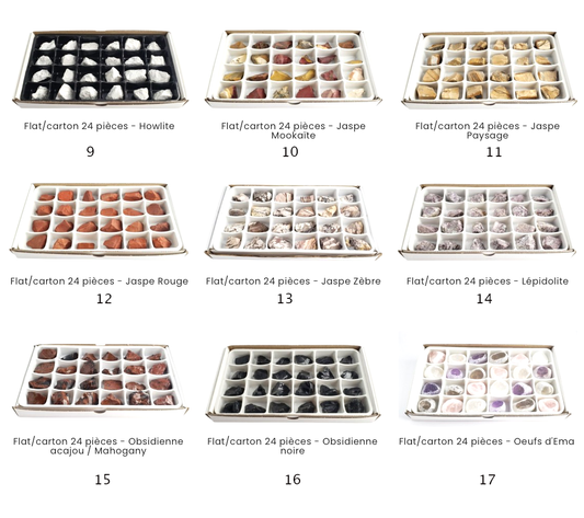 Vente au carton/flat complet de 24 pièces de 3/4 x 3/4 cm environ. Parfait pour lithothérapie, bijouterie, collection ou exposition !