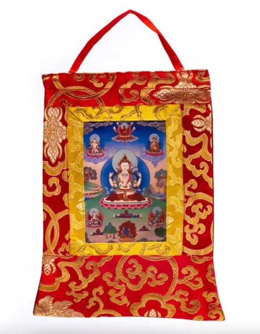 Thangka en textile de Brocart, de 29x 20 centimètres, 5 modèles au choix, superbes pièces !