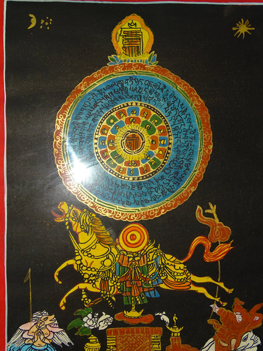 Thangka en textile de la roue de la vie, de 45x 30 centimètres, superbe pièce ancienne !