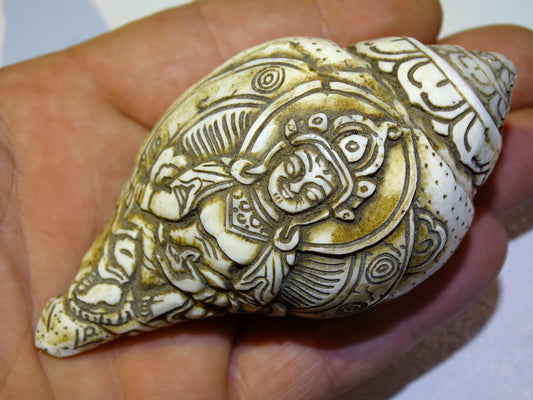 Incroyable conque/ Dun du Népal, 10 x 6 centimètres x 5 de hauteur. Avec magnifique gravure du Bouddha, superbe et authentique pièce ! Vendu avec socle en métal sur mesure.