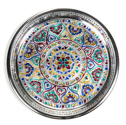 Plateaux d'offrandes en acier inoxydable avec gravures de Ganesh ou Mandala, taille de 28x2,5 cm - 300 gr. - Plat indien richement décoré, traditionnellement utilisé pour offrir des bougies, de l'encens, des fleurs, de la nourriture...