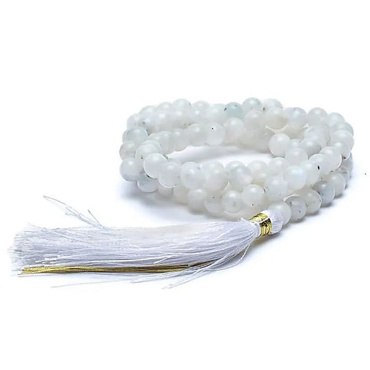 Mala en Pierre de lune de 108 perles de 6 ou 8 mm (au choix) - 65 à 85 cm. Pochette de rangement incluse !